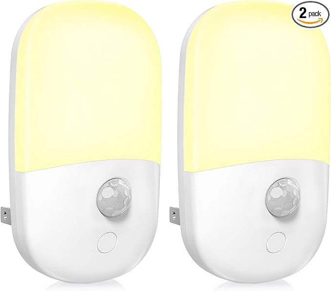 MAZ-TEK Plug in Motion Sensor Dimmable Night Light, Soft Warm White LED Nightlight with Dusk to Dawn Motion Sensor, Adjustable Brightness for Bedroom, Bathroom, Kitchen, Hallway, Stairs,2 Pack